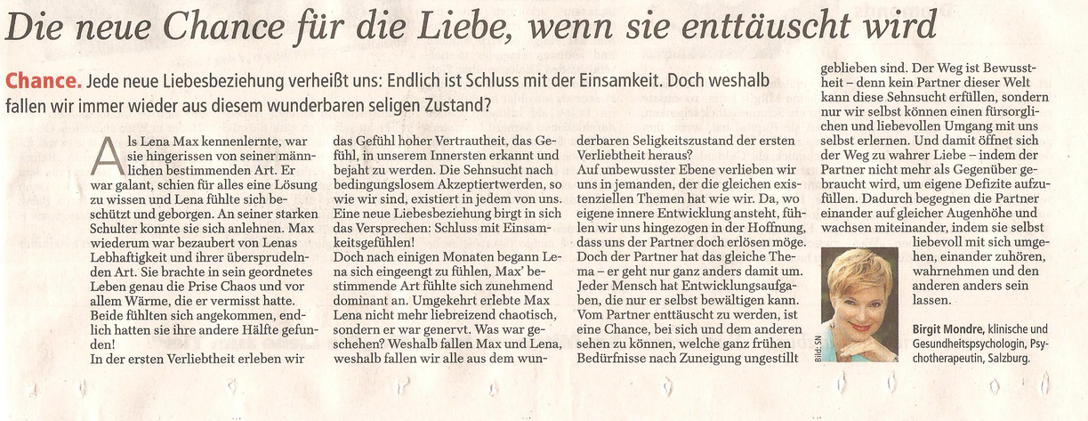Salzburger Nachrichten vom 29.5.2012: "Die Liebe ist wohl ein Thema, das uns ein Leben lang bewegt...."